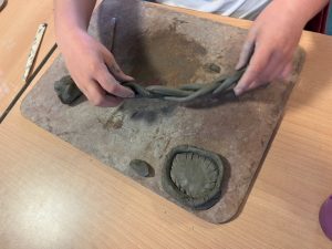 Working with clay to make traditional Roman coil pots.