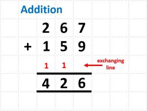 Moreover, written methods for addition, subtraction and multiplication are taught as in the pictures below.
