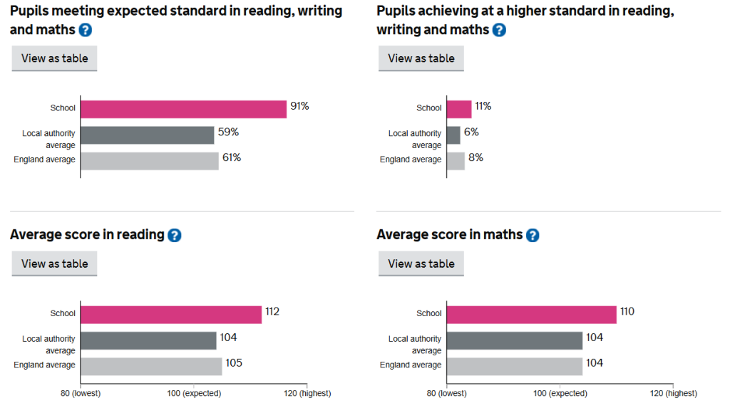 The Department for Education provides a site when you can compare the performance of All Saints’ C of E Primary School in more detail. Click here for the link to the latest information (2024). Please note that this information is from the assessments carried out in 2019. No data was published in 2020, 2021 or 2022 as a result of the Covid pandemic. The DfE will update this page to show the results of assessments carried out in 2024 and the link will be updated when this information is available.